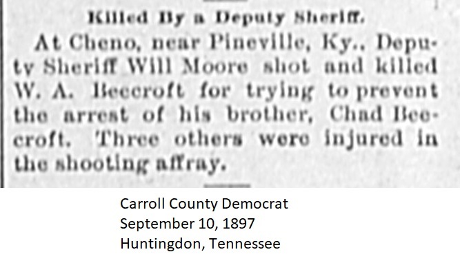 Carroll County Democrat 1897 Newspaper Clippings, Surnames A-B Carroll County, TNGenWeb Images may not display in alphabetical order. Use the Back and Next buttons below the image window to navigate. W. A. Beecroft Image 16 of 45 Carroll County Democrat September 10, 1897 -Huntingdon-Tennessee