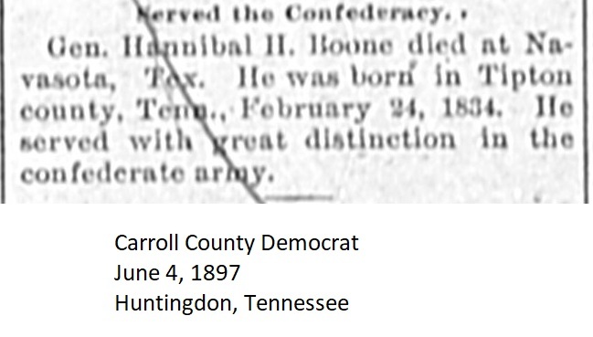 Carroll County Democrat 1897 Newspaper Clippings, Surnames A-B Carroll County, TNGenWeb Images may not display in alphabetical order. Use the Back and Next buttons below the image window to navigate. Hannibal Boone Image 29 of 45 Carroll County Democrat June 4, 1897 - Huntingdon-Tennessee