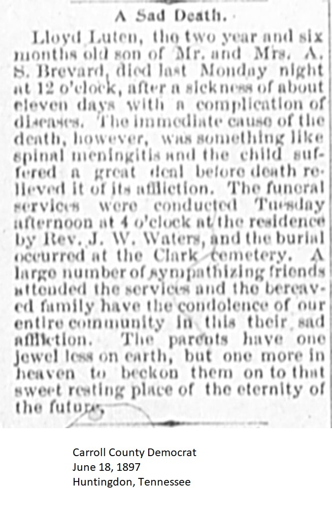 Carroll County Democrat 1897 Newspaper Clippings, Surnames A-B Carroll County, TNGenWeb Images may not display in alphabetical order. Use the Back and Next buttons below the image window to navigate. Brevard-Llyod-Luten_Carroll-County-Democrat-June-18-1897-Huntingdon-Tennessee Image 35 of 45