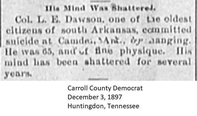 Carroll County Democrat 1897 Newspaper Clippings, Surnames C-E Carroll County, TNGenWeb Images may not display in alphabetical order. Use the Back and Next buttons below the image window to navigate. Dawson-L.-E._Carroll-County-Democrat-December-3-1897-Huntingdon-Tennessee Image 45 of 67