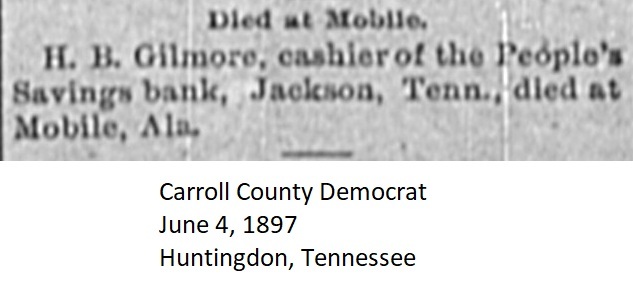 Carroll County Democrat 1897 Newspaper Clippings, Surnames F-I Carroll County, TNGenWeb Images may not display in alphabetical order. Use the Back and Next buttons below the image window to navigate. Gilmore-H.-B._Carroll-County-Democrat-June-4-1897-Huntingdon-Tennessee Image 9 of 60