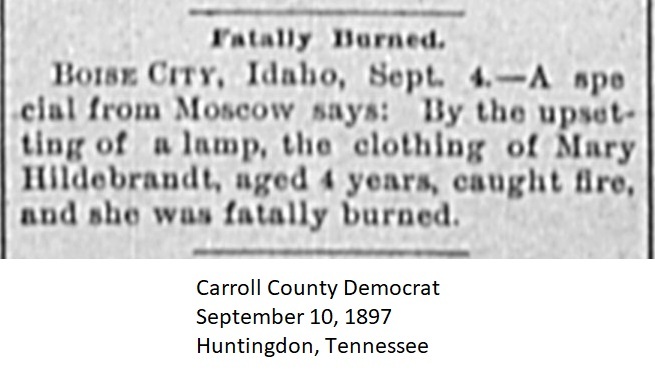 Carroll County Democrat 1897 Newspaper Clippings, Surnames F-I Carroll County, TNGenWeb Images may not display in alphabetical order. Use the Back and Next buttons below the image window to navigate. Hildebrandt-Mary_Carroll-County-Democrat-September-10-1897-Huntingdon-Tennessee Image 40 of 60