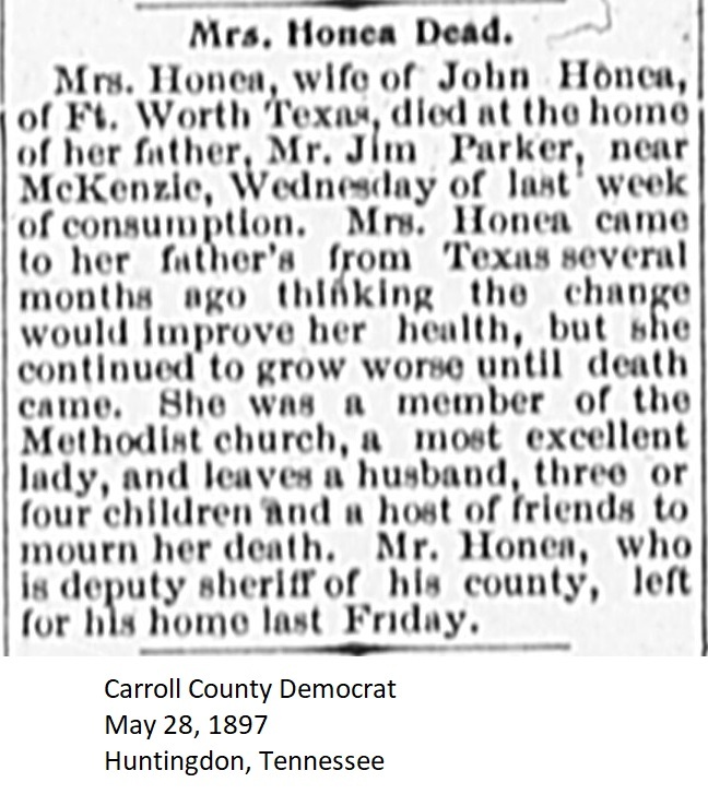 Carroll County Democrat 1897 Newspaper Clippings, Surnames F-I Carroll County, TNGenWeb Images may not display in alphabetical order. Use the Back and Next buttons below the image window to navigate. Honca_Carroll-County-Democrat-May-28-1897-Huntingdon-Tennessee Image 47 of 60