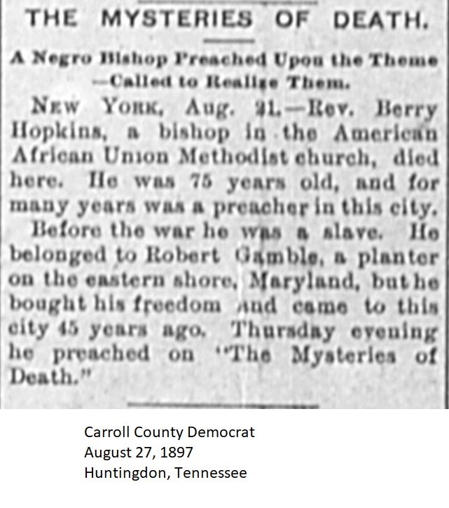 Carroll County Democrat 1897 Newspaper Clippings, Surnames F-I Carroll County, TNGenWeb Images may not display in alphabetical order. Use the Back and Next buttons below the image window to navigate. Hopkins-Berry_Carroll-County-Democrat-August-27-1897-Huntingdon-Tennessee Image 51 of 60