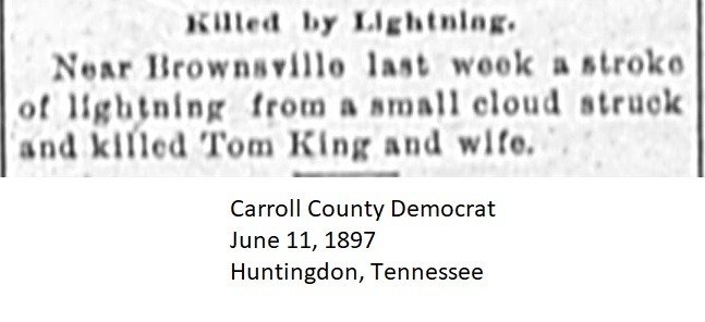 Carroll County Democrat 1897 Newspaper Clippings, Surnames J-L Carroll County, TNGenWeb Images may not display in alphabetical order. Use the Back and Next buttons below the image window to navigate. King-Tom_Carroll-County-Democrat-June-11-1897-Huntingdon-Tennessee Image 18 of 35