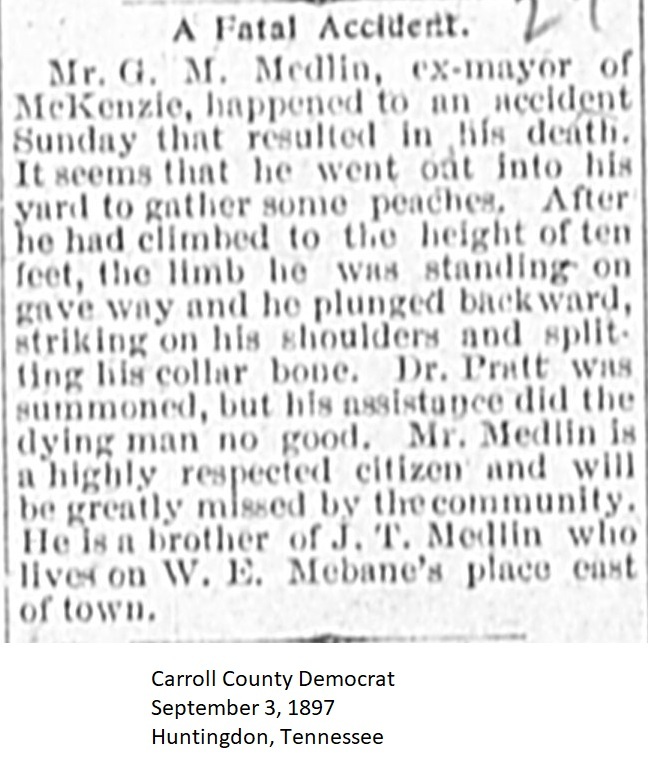 Carroll County Democrat 1897 Newspaper Clippings, Surnames M-O Carroll County, TNGenWeb Images may not display in alphabetical order. Use the Back and Next buttons below the image window to navigate. Medlin-G.-M._Carroll-County-Democrat-September-3-1897-Huntingdon-Tennessee Image 23 of 49