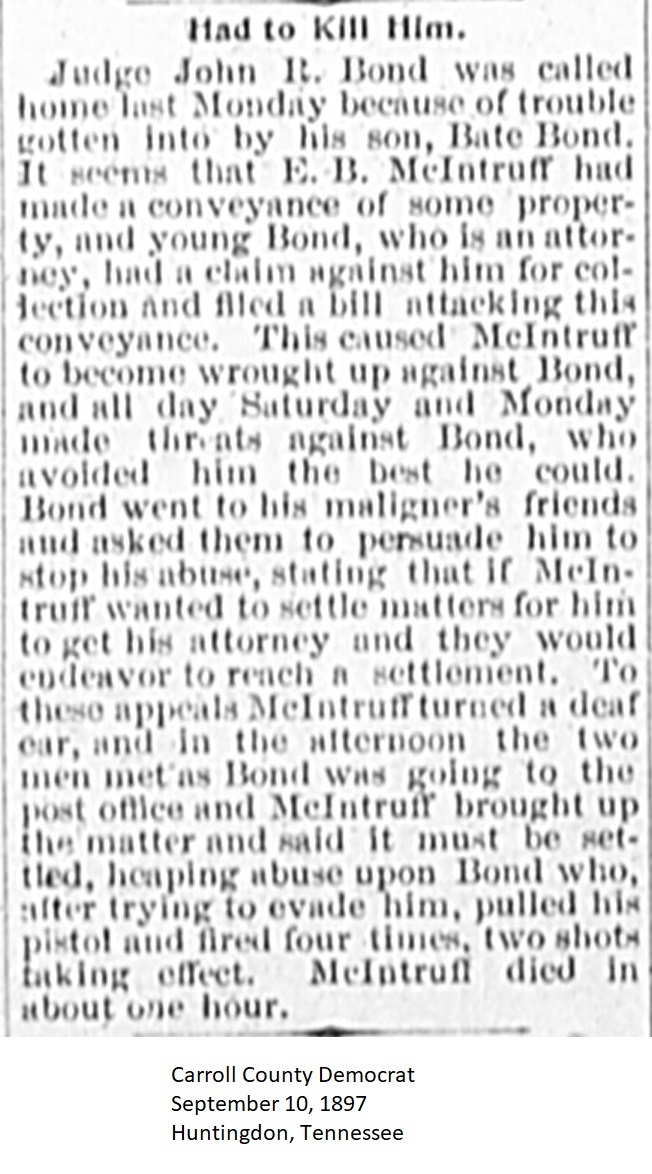 Carroll County Democrat 1897 Newspaper Clippings, Surnames M-O Carroll County, TNGenWeb Images may not display in alphabetical order. Use the Back and Next buttons below the image window to navigate. MeIntruff-E.-B._Carroll-County-Democrat-September-10-1897-Huntingdon-Tennessee Image 26 of 49