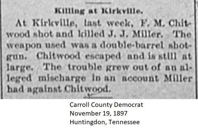 Carroll County Democrat 1897 Newspaper Clippings, Surnames M-O Carroll County, TNGenWeb Images may not display in alphabetical order. Use the Back and Next buttons below the image window to navigate. Miller-J.-J._Carroll-County-Democrat-November-19-1897-Huntingdon-Tennessee Image 24 of 49