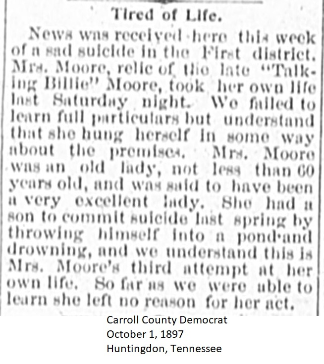Carroll County Democrat 1897 Newspaper Clippings, Surnames M-O Carroll County, TNGenWeb Images may not display in alphabetical order. Use the Back and Next buttons below the image window to navigate. Moore_Carroll-County-Democrat-October-1-1897-Huntingdon-Tennessee Image 37 of 49