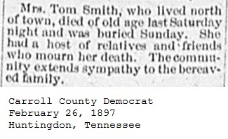 Carroll County Democrat 1897 Newspaper Clippings, Surnames P-S Carroll County, TNGenWeb Images may not display in alphabetical order. Use the Back and Next buttons below the image window to navigate. Smith-Tom_Carroll-County-Democrat-February-26-1897-Huntingdon-Tennessee Image 45 of 61