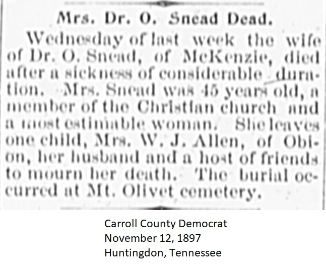 Carroll County Democrat 1897 Newspaper Clippings, Surnames P-S Carroll County, TNGenWeb Images may not display in alphabetical order. Use the Back and Next buttons below the image window to navigate. Snead_Carroll-County-Democrat-November-12-1897-Huntingdon-Tennessee Image 48 of 61