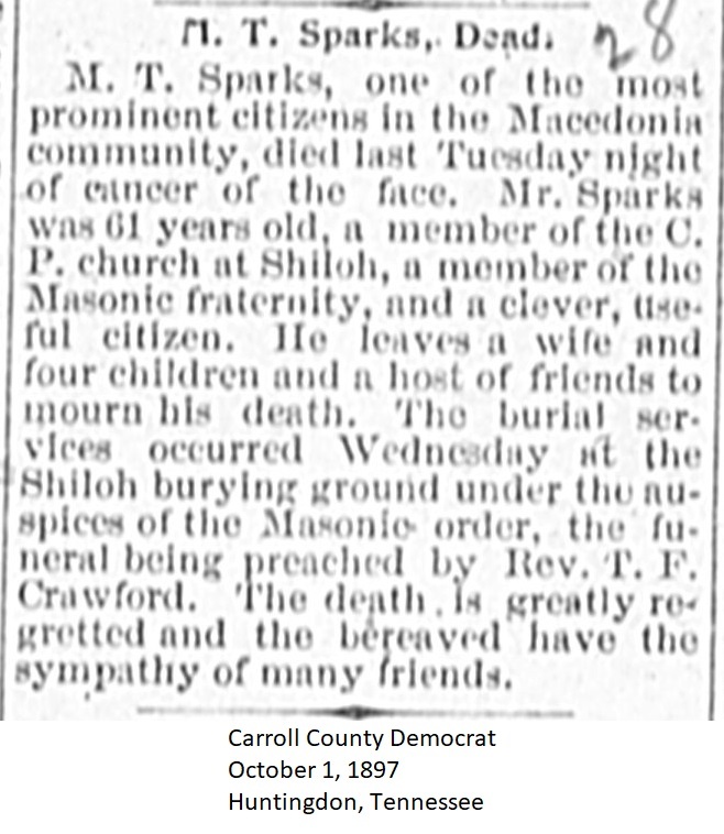 Carroll County Democrat 1897 Newspaper Clippings, Surnames P-S Carroll County, TNGenWeb Images may not display in alphabetical order. Use the Back and Next buttons below the image window to navigate. Sparks-M.-T._Carroll-County-Democrat-October-1-1897-Huntingdon-Tennessee Image 51 of 61