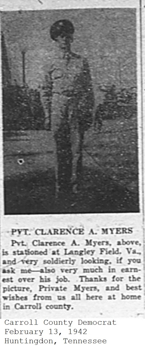Carroll County Democrat 1942 Newspaper Clippings Carroll County, TNGenWeb Images may not display in alphabetical order. Use the Back and Next buttons below the image window to navigate. Myers-Clarence-A.__Carroll-County-Democrat-February-13-1942-Huntingdon-Tennessee Image 43 of 65