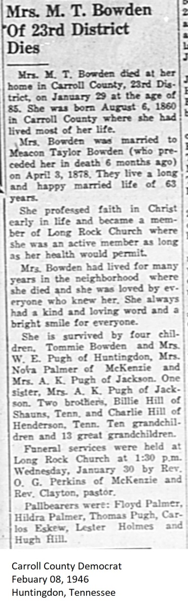 Carroll County Democrat 1946 Newspaper Clippings, Surnames A-L Carroll County, TNGenWeb Images may not display in alphabetical order. Use the Back and Next buttons below the image window to navigate. Bowden_Carroll-County-Democrat-February-08-1946-Huntingdon-Tennessee Image 13 of 69