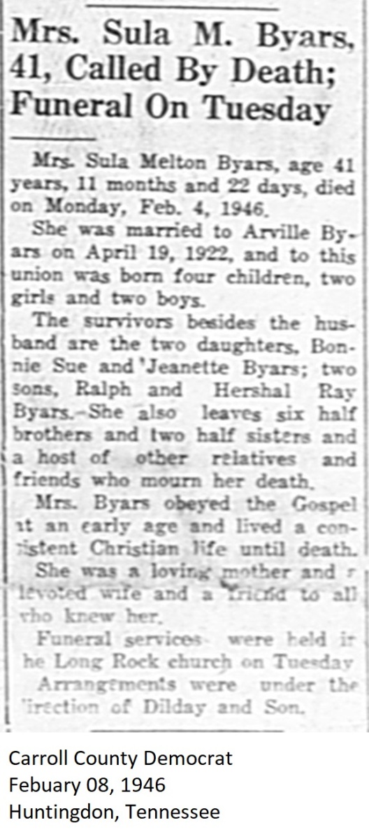 Carroll County Democrat 1946 Newspaper Clippings, Surnames A-L Carroll County, TNGenWeb Images may not display in alphabetical order. Use the Back and Next buttons below the image window to navigate. Byars-Sula-Melton_Carroll-County-Democrat-February-08-1946-Huntingdon-Tennessee Image 18 of 69