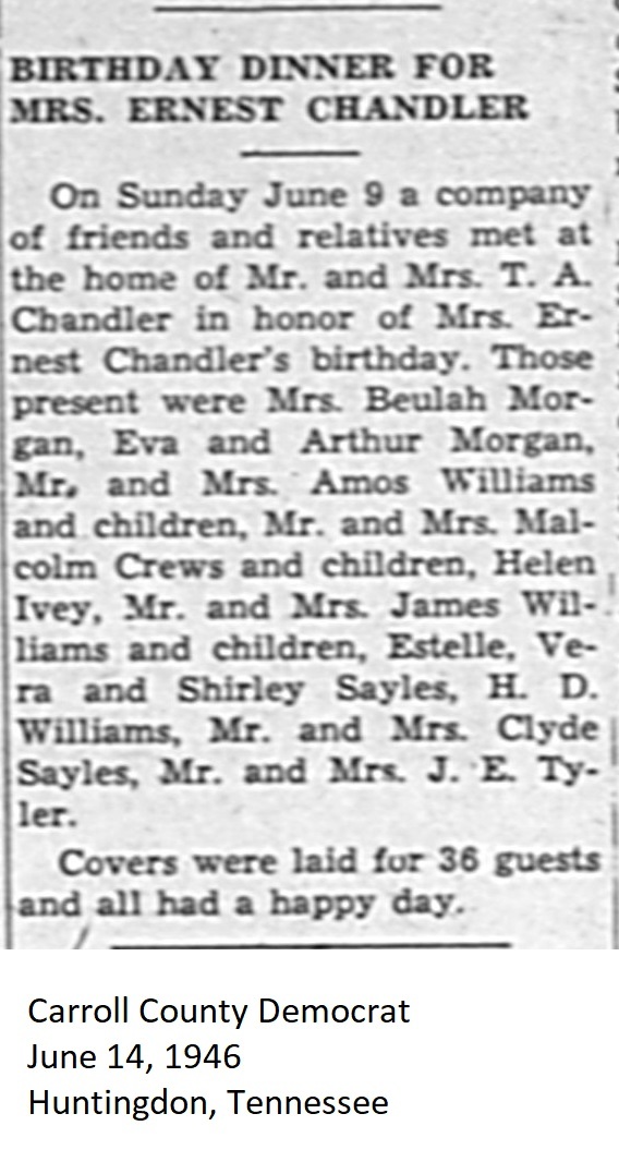 Carroll County Democrat 1946 Newspaper Clippings, Surnames A-L Carroll County, TNGenWeb Images may not display in alphabetical order. Use the Back and Next buttons below the image window to navigate. Chandler-Birthday_Carroll-County-Democrat-June-14-1946-Huntingdon-Tennessee Image 23 of 69
