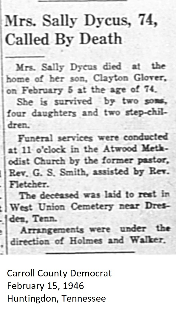 Carroll County Democrat 1946 Newspaper Clippings, Surnames A-L Carroll County, TNGenWeb Images may not display in alphabetical order. Use the Back and Next buttons below the image window to navigate. Dycus-Sally_Carroll-County-Democrat-February-15-1946-Huntingdon-Tennessee Image 31 of 69