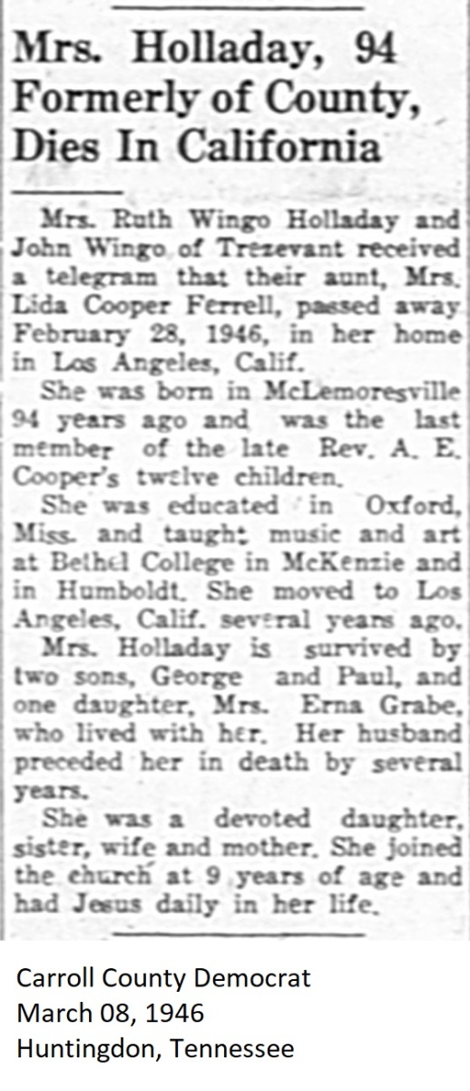 Carroll County Democrat 1946 Newspaper Clippings, Surnames A-L Carroll County, TNGenWeb Images may not display in alphabetical order. Use the Back and Next buttons below the image window to navigate. Ferrell-Lida-Cooper_Carroll-County-Democrat-March-08-1946-Huntingdon-Tennessee Image 41 of 69