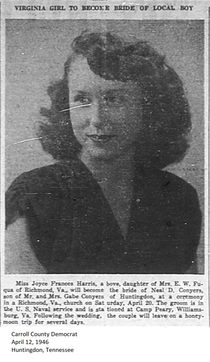 Carroll County Democrat 1946 Newspaper Clippings, Surnames A-L Carroll County, TNGenWeb Images may not display in alphabetical order. Use the Back and Next buttons below the image window to navigate. Harris-Joyce-Frances_Carroll-County-Democrat-April-12-1946-Huntingdon-Tennessee Image 51 of 69