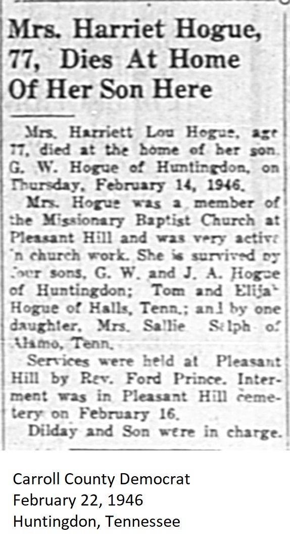 Carroll County Democrat 1946 Newspaper Clippings, Surnames A-L Carroll County, TNGenWeb Images may not display in alphabetical order. Use the Back and Next buttons below the image window to navigate. Hogue-Harriett-Lou_Carroll-County-Democrat-February-22-1946-Huntingdon-Tennessee Image 56 of 69