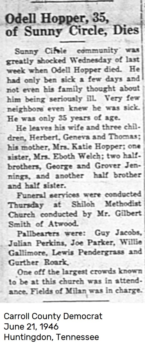 Carroll County Democrat 1946 Newspaper Clippings, Surnames A-L Carroll County, TNGenWeb Images may not display in alphabetical order. Use the Back and Next buttons below the image window to navigate. Hopper-Odell_Carroll-County-Democrat-June-21-1946-Huntingdon-Tennessee Image 59 of 69