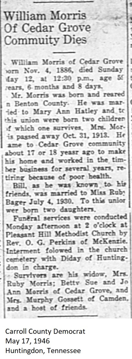 Carroll County Democrat 1946 Newspaper Clippings, Surnames M-Z Carroll County, TNGenWeb Images may not display in alphabetical order. Use the Back and Next buttons below the image window to navigate. Morris-William_Carroll-County-Democrat-May-17-1946-Huntingdon-Tennessee Image 13 of 56