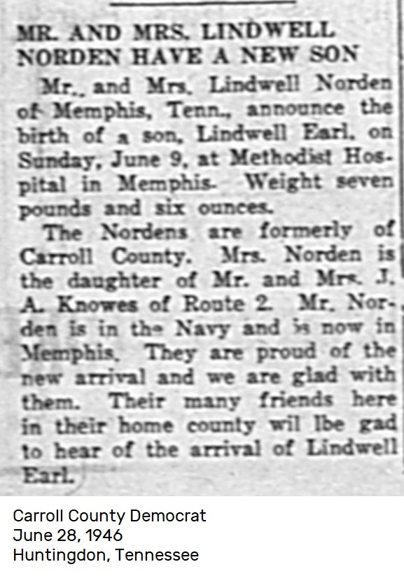 Carroll County Democrat 1946 Newspaper Clippings, Surnames M-Z Carroll County, TNGenWeb Images may not display in alphabetical order. Use the Back and Next buttons below the image window to navigate. Norden-Earl_Carroll-County-Democrat-June-28-1946-Huntingdon-Tennessee Image 19 of 56