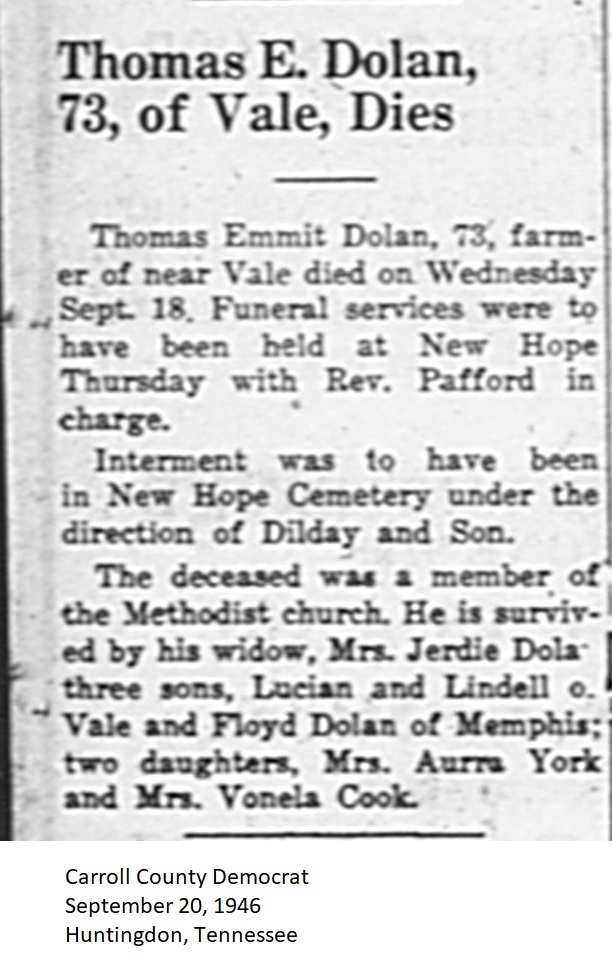 Carroll County Democrat 1946 Newspaper Clippings, Surnames M-Z Carroll County, TNGenWeb Images may not display in alphabetical order. Use the Back and Next buttons below the image window to navigate. Thomas-E.-Dolan_Carroll-County-Democrat-September-20-1946-Huntingdon-Tennessee Image 38 of 56