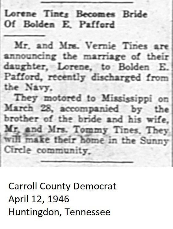Carroll County Democrat 1946 Newspaper Clippings, Surnames M-Z Carroll County, TNGenWeb Images may not display in alphabetical order. Use the Back and Next buttons below the image window to navigate. Tines-and-Pafford-wedding_Carroll-County-Democrat-April-12-1946-Huntingdon-Tennessee Image 43 of 56
