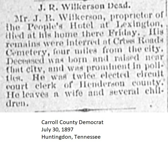 Carroll County Democrat Newspaper Clippings 1897, Surnames T-Z Carroll County, TNGenWeb Images may not display in alphabetical order. Use the Back and Next buttons below the image window to navigate. Wilkerson-J.-R._Carroll-County-Democrat-July-30-1897-Huntingdon-Tennessee Image 30 of 45