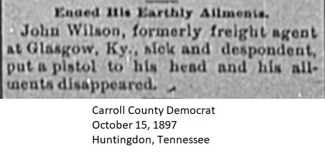 Carroll County Democrat Newspaper Clippings 1897, Surnames T-Z Carroll County, TNGenWeb Images may not display in alphabetical order. Use the Back and Next buttons below the image window to navigate. Wilson-John_Carroll-County-Democrat-October-15-1897-Huntingdon-Tennessee Image 36 of 45