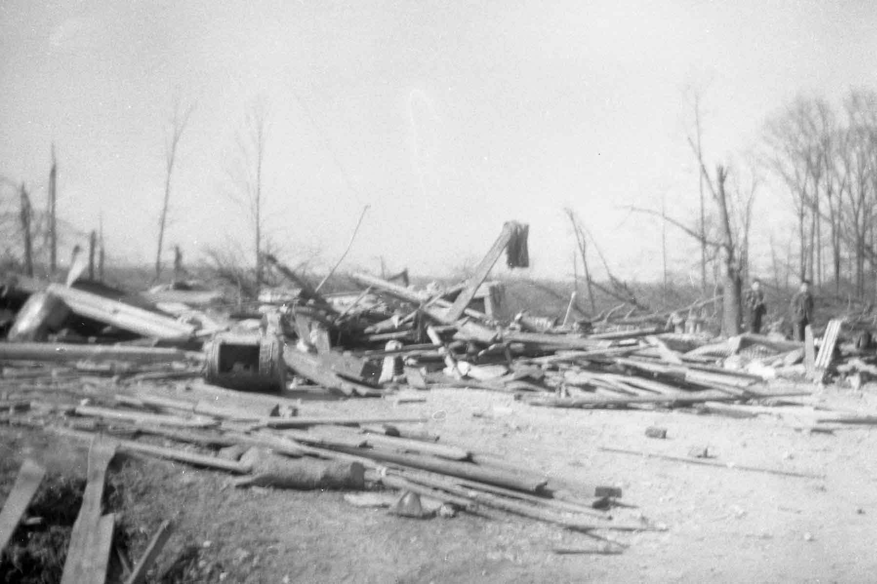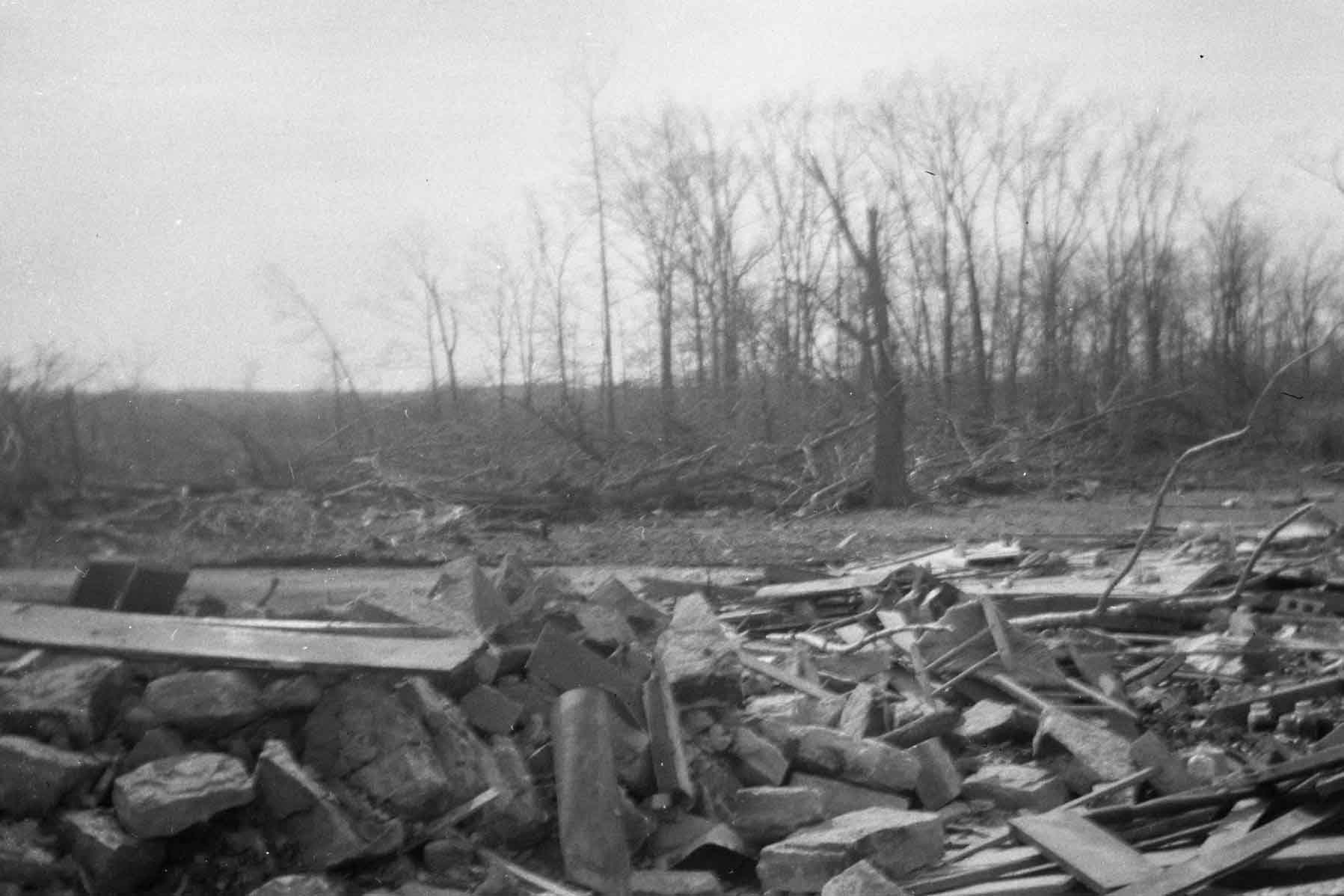 Very interesting photos. My step-grandmother’s brother, Almon DeLong was killed during this tornado and his son, Ralph, was seriously injured. there seemed to be nothing much left of their house and little store. It was a terrible tragedy. We lived at Sugar Tree at the time and the storm there was scary. Fortunately, the tornado missed us but we had tree limbs, debris, and many storm related pieces of things on our farm including tin roofing from buildings and pieces of cloth hanging in trees. Thank you for putting this information on line.