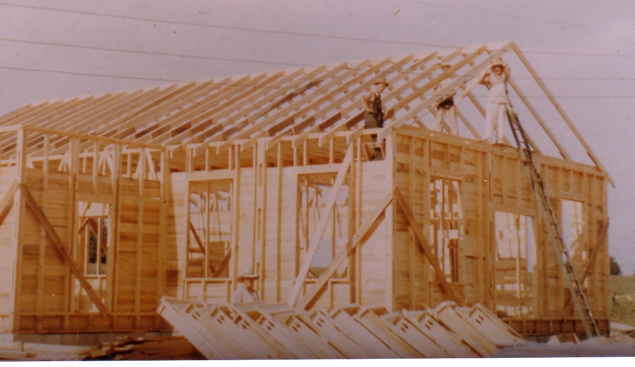 The congregation broke ground about 1947 for the church and parsonage. The photos below show ground-breaking and construction. (Click on a thumbnail to see a larger image.)
