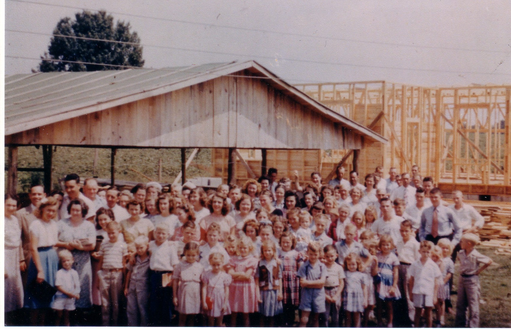 Prior to completion of the new church building, the congregation met outdoors.  (Click on a thumbnail to see a larger image.)