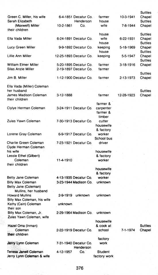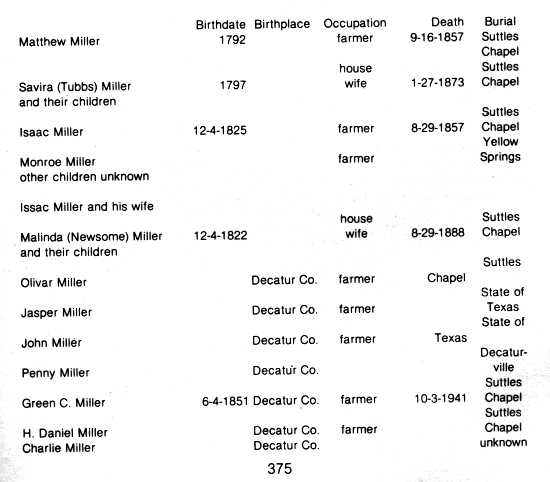 Issac Miller was the first Miller to settle in the 12th district of Decatur County. He came from South Carolina in 1850. The old home place is still in the Miller family. Silas A. Miller lives there.