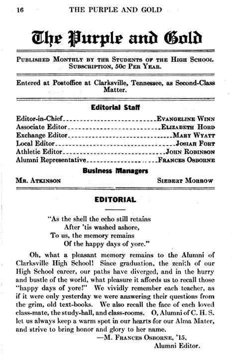 1916, Purple and Gold Montgomery County TNGenWeb Posted on August 7, 2023 by Katie RadfordAugust 7, 2023 These pages are contributed by Sam Winters. 16pg-16 Image 18 of 36