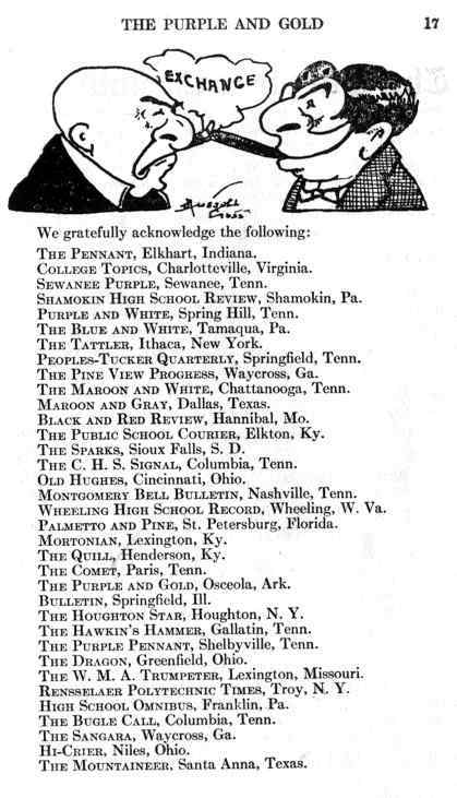 1916, Purple and Gold Montgomery County TNGenWeb Posted on August 7, 2023 by Katie RadfordAugust 7, 2023 These pages are contributed by Sam Winters. 16pg-17 Image 19 of 36