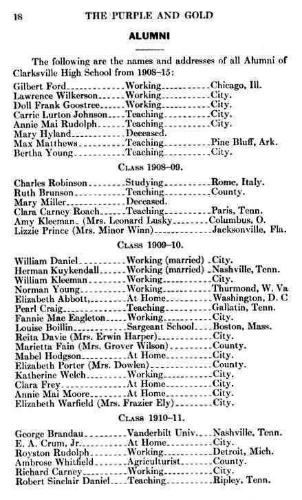 1916, Purple and Gold Montgomery County TNGenWeb Posted on August 7, 2023 by Katie RadfordAugust 7, 2023 These pages are contributed by Sam Winters. 16pg-18 Image 20 of 36