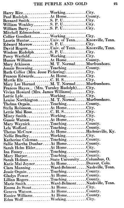 1916, Purple and Gold Montgomery County TNGenWeb Posted on August 7, 2023 by Katie RadfordAugust 7, 2023 These pages are contributed by Sam Winters. 16pg-21 Image 23 of 36