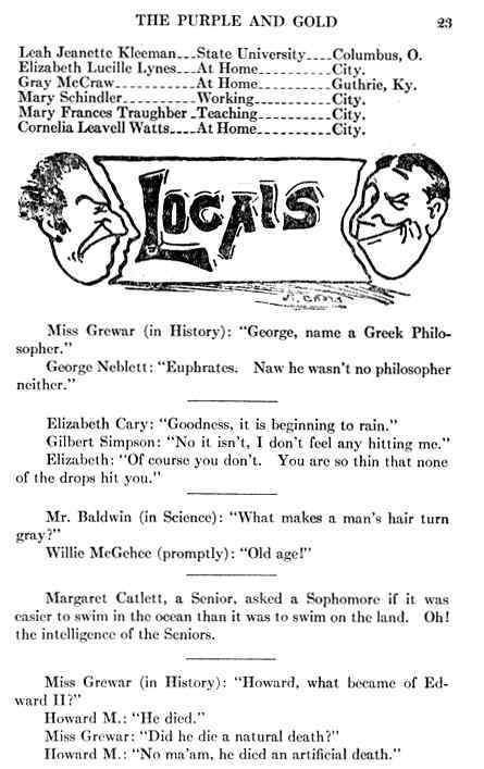 1916, Purple and Gold Montgomery County TNGenWeb Posted on August 7, 2023 by Katie RadfordAugust 7, 2023 These pages are contributed by Sam Winters. 16pg-23 Image 25 of 36
