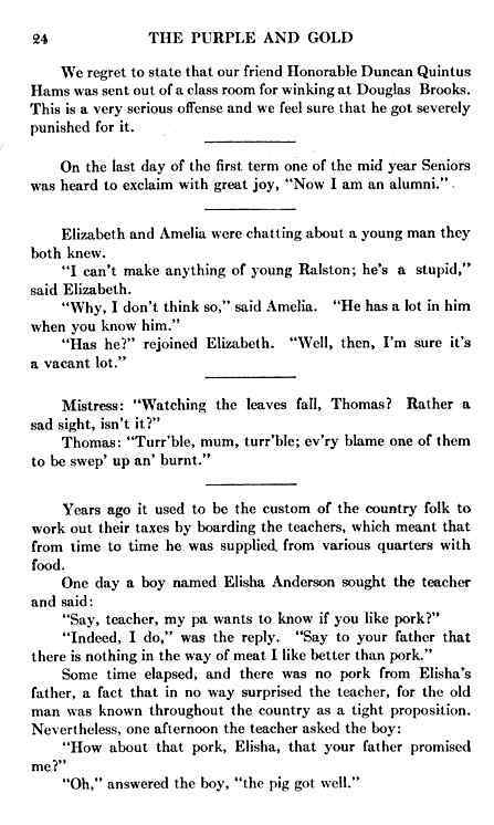 1916, Purple and Gold Montgomery County TNGenWeb Posted on August 7, 2023 by Katie RadfordAugust 7, 2023 These pages are contributed by Sam Winters. 16pg-24 Image 26 of 36