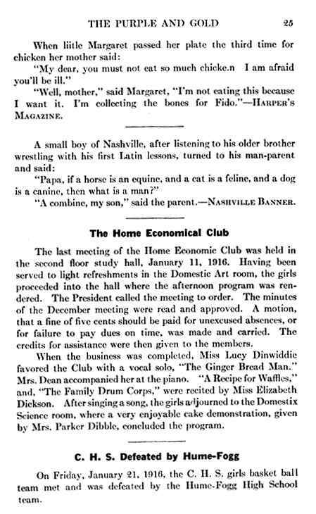 1916, Purple and Gold Montgomery County TNGenWeb Posted on August 7, 2023 by Katie RadfordAugust 7, 2023 These pages are contributed by Sam Winters. 16pg-25 Image 27 of 36