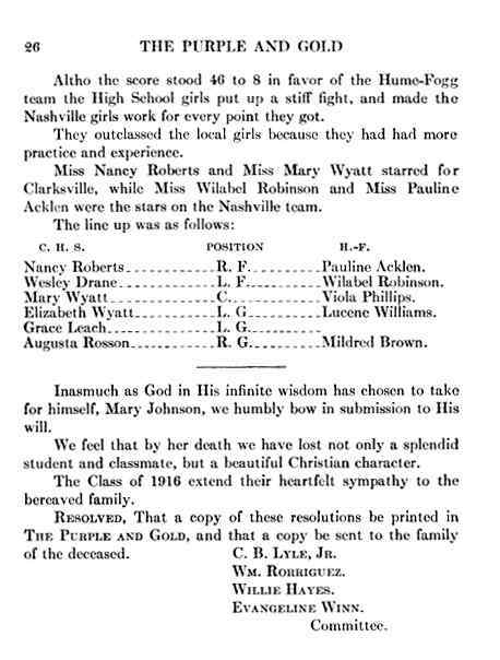 1916, Purple and Gold Montgomery County TNGenWeb Posted on August 7, 2023 by Katie RadfordAugust 7, 2023 These pages are contributed by Sam Winters. 16pg-26 Image 28 of 36