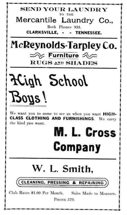 1916, Purple and Gold Montgomery County TNGenWeb Posted on August 7, 2023 by Katie RadfordAugust 7, 2023 These pages are contributed by Sam Winters. 16pg-28 Image 30 of 36
