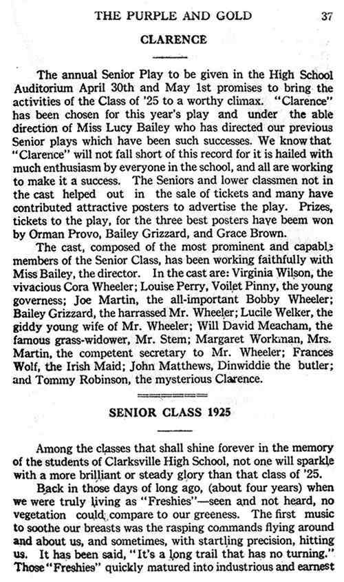 1925, Purple and Gold Montgomery County TNGenWeb Posted on August 7, 2023 by Katie RadfordAugust 7, 2023 These pages are contributed by Sam Winters and Sandra Stacey. 25pg-37 Image 19 of 28