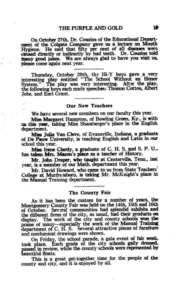 1926, Purple and Gold Montgomery County TNGenWeb Posted on August 7, 2023 by Katie RadfordAugust 7, 2023 These pages are contributed by Sandra Stacey. N26pg-19 Image 20 of 48