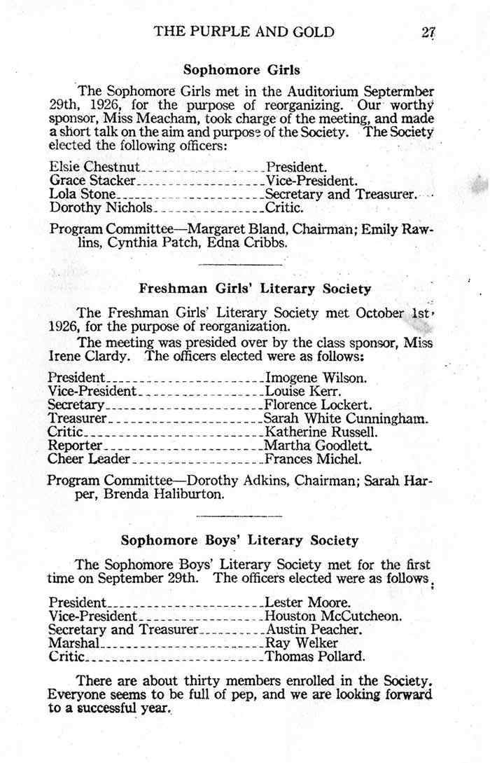 1926, Purple and Gold Montgomery County TNGenWeb Posted on August 7, 2023 by Katie RadfordAugust 7, 2023 These pages are contributed by Sandra Stacey. N26pg-27 Image 28 of 48