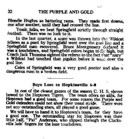 1926, Purple and Gold Montgomery County TNGenWeb Posted on August 7, 2023 by Katie RadfordAugust 7, 2023 These pages are contributed by Sandra Stacey. N26pg-32 Image 33 of 48