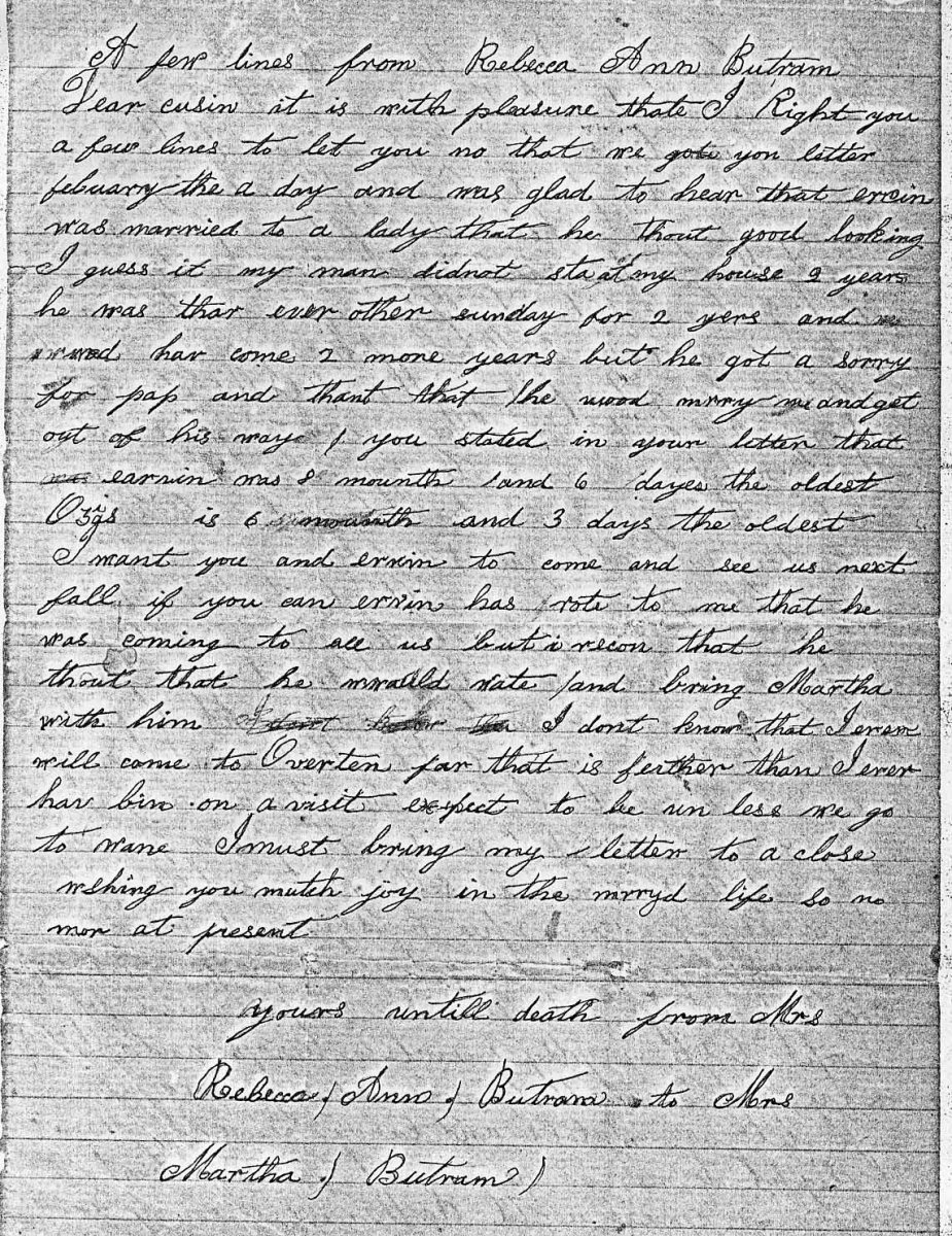 Rebecca Ann Butram to Martha Butram / undated (poss 06 Mar 1860