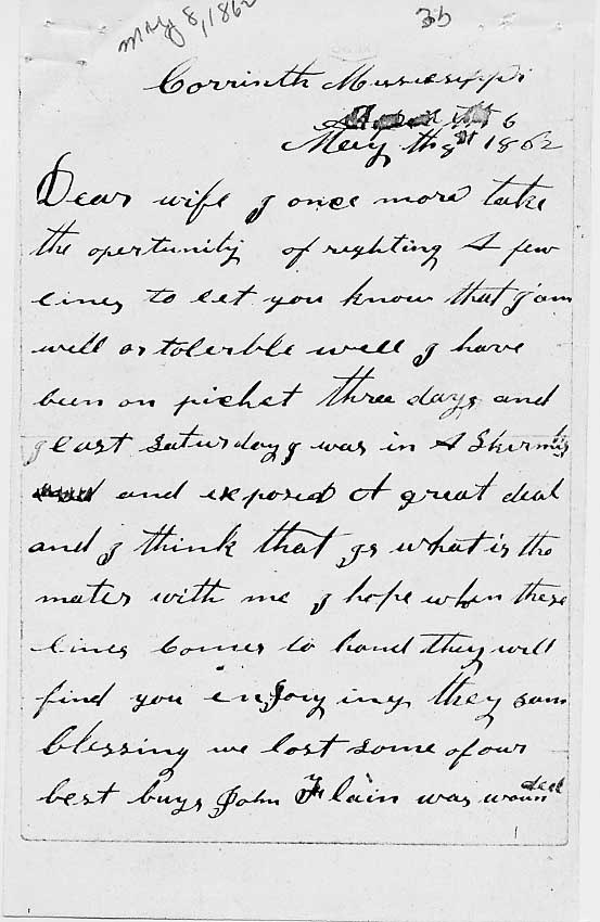 Wm E Butram to Marthy Butram / Page 1 / Corinth, MS, 08 May 1862